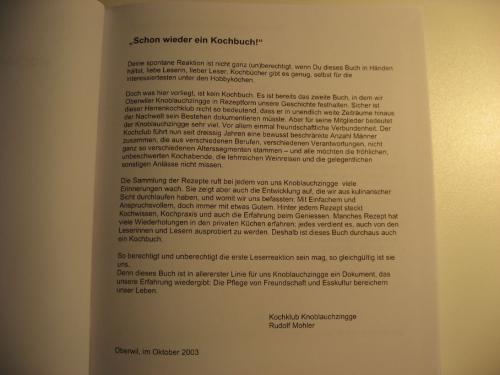 Der Knoblauchzingge hat in seiner Clubgeschichte bereits zwei Kochbücher herausgebracht. Diese Bücher dokumentieren die Clubgeschichte und vor allem auch die Kochabende mit ihren Menus und damit verbunden auch die Entwicklung im Kochen und im Genießen.